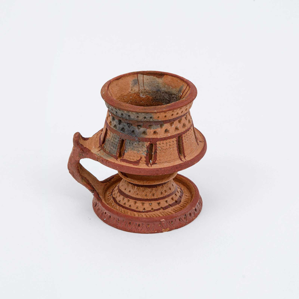 مدخن مصنوع يدوياً بتصميم كلاسيكي من الفخار ويتميز بمظهره الفريد.